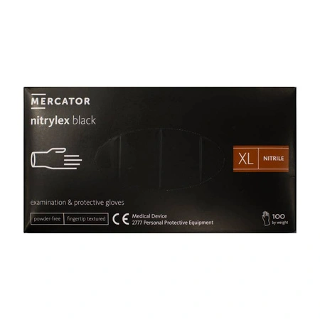 Rękawice nitrylowe czarne XL PP opak. 100szt MERCATOR